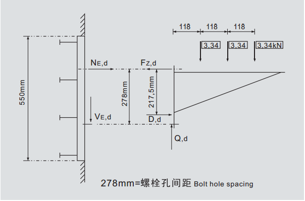 • 预埋槽钢可供长度及铆钉布置