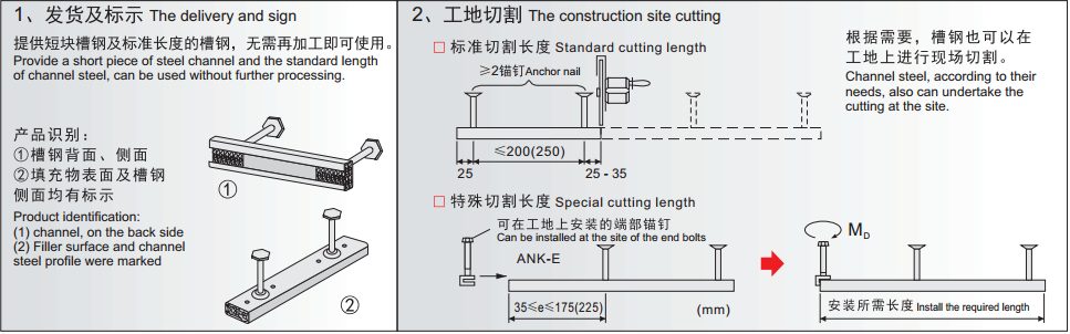 预埋槽钢可供长度及铆钉布置