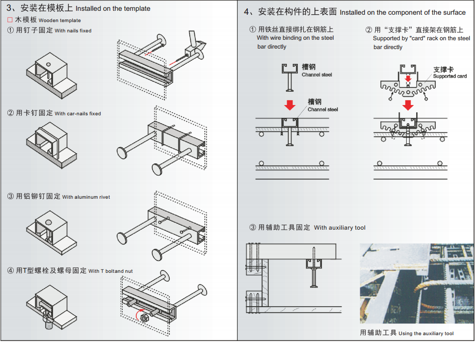 用辅助工具固定 用铁丝绑扎